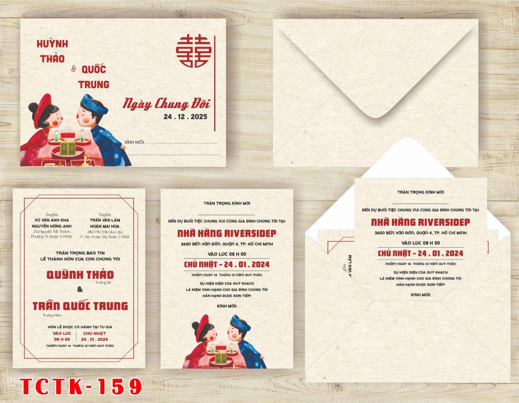 Thiệp gồm bao thư + 2 tờ ruột in 1 mặt giấy fort dày 180g, khách hàng có thể đổi loại giấy sẽ chênh lệch giá giá: fort dày 200g, fort gân 230g, ánh kim 200g, ánh kim 230g