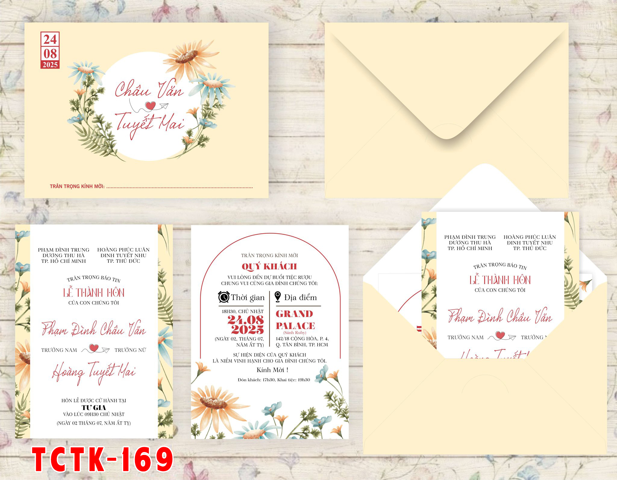 Họa tiết, màu sắc, font chữ, chất liệu giấy được thay đổi, Dâu rể có thể ép kim phần chính để thiệp nổi bật