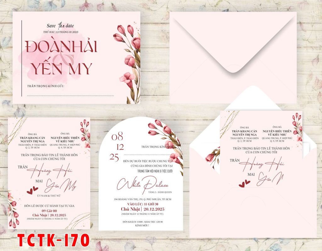 Thiệp gồm bao thư + 2 tờ ruột in 1 mặt giấy fort dày 180g, khách hàng có thể đổi loại giấy sẽ chênh lệch giá giá: fort dày 200g, fort gân 230g, ánh kim 200g, ánh kim 230g